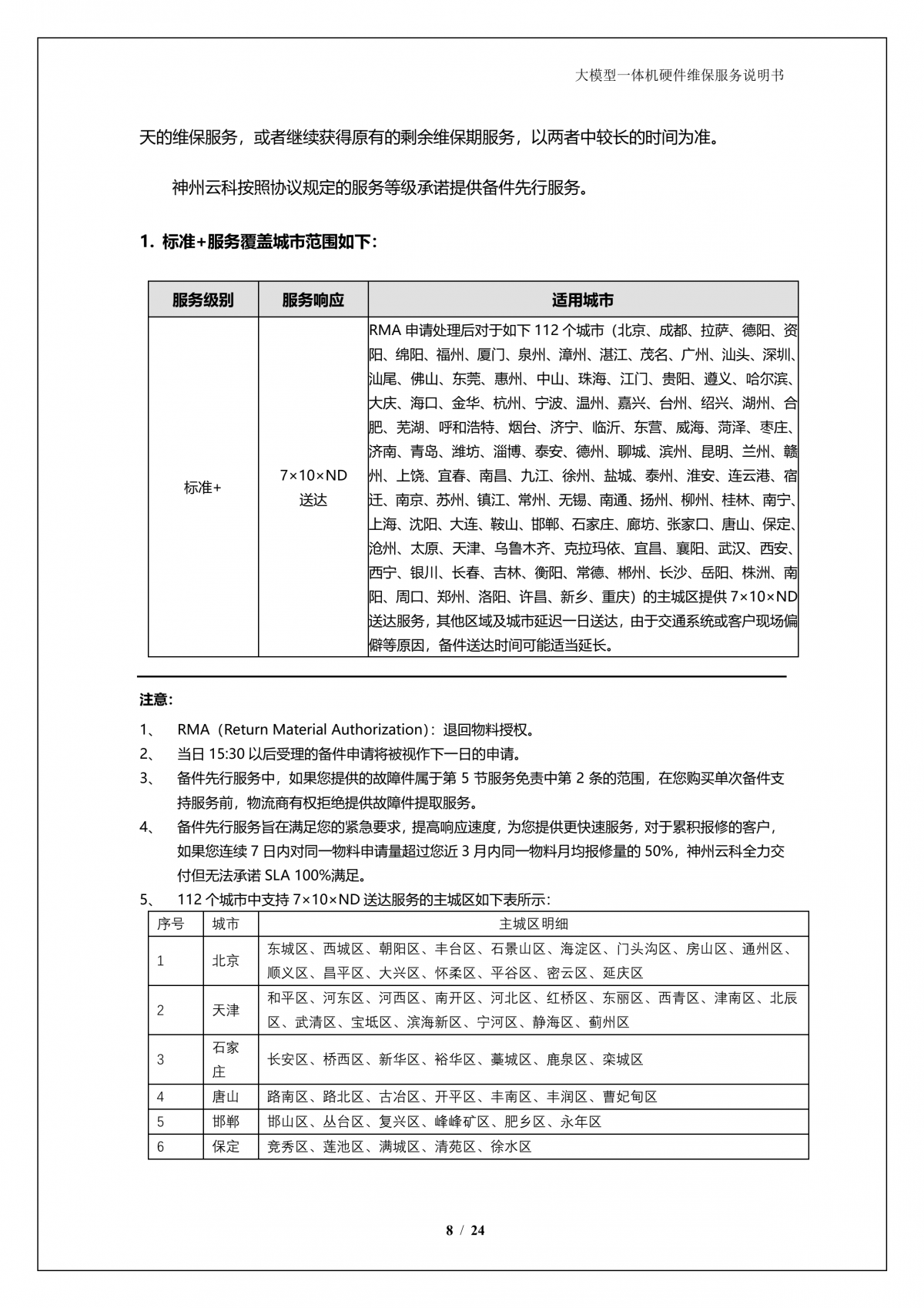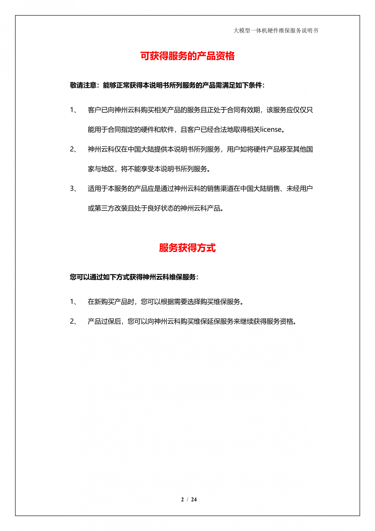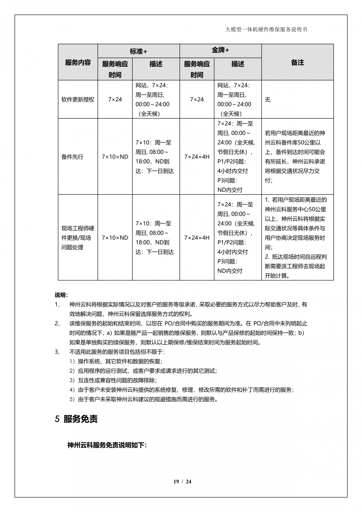 神州A924 DS大模型一体机硬件维保服务说明书_V1.1